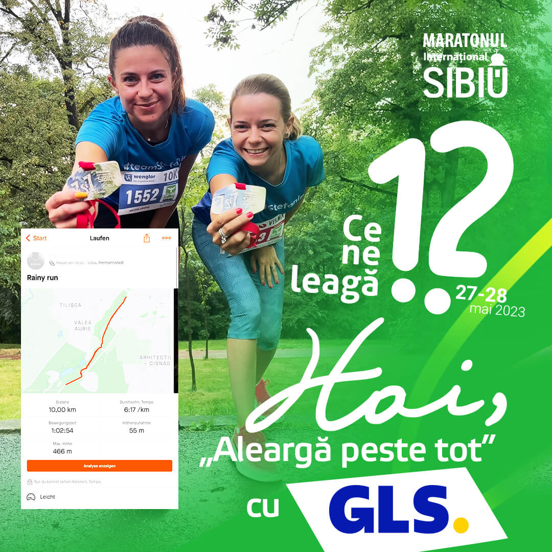 Vrei să alergi pentru o cauză la cea de-a douăsprezecea ediție a Maratonului Internațional Sibiu, dar nu vei putea fi la Sibiu în ziua evenimentului sau încă nu te simți confortabil/ă să iei startul la cursa fizică din Piața Mare? Hai să lași urme acolo unde te vei afla, între 27 mai – 1 iulie, la „Aleargă peste tot” cu GLS. Ne bucurăm să-i avem alături și în acest an pe partenerii de la GLS și le mulțumim că vin în sprijinul celor care vor participa la distanță.
